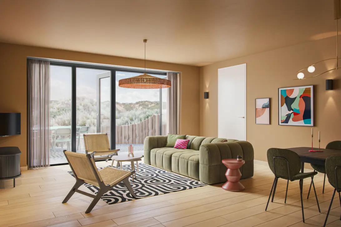 Duyn Suite 4-persoons Comfort – ideaal voor gezinnen of stellen die willen genieten van rust, comfort en een unieke verblijfservaring midden in de duinen.