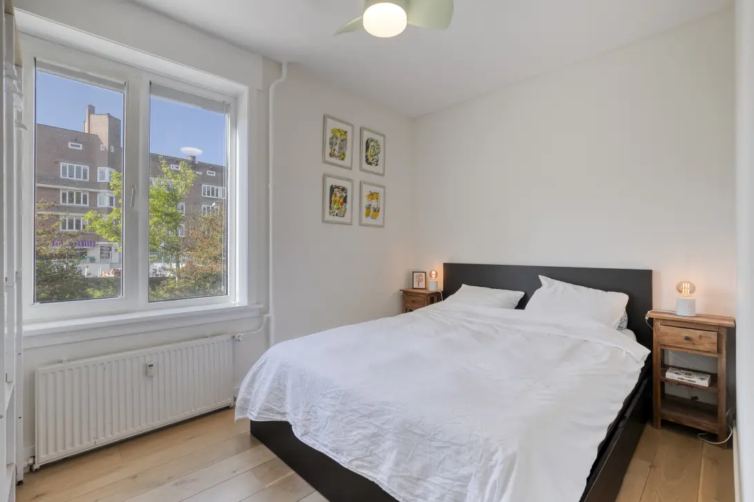 Korte Geuzenstraat is located in a peaceful area of Amsterdam-West, directly along the Kostverlorenvaart canal. Since only a pedestrian path runs along the water, the setting is tranquil, yet you’re still right in the heart of the city. Popular hotspots such as Café Thuys, Fort Negen, Rembrandtpark, and Westerpark are all within walking distance. You can reach Dam Square in 20 minutes on foot, or in just 10 minutes by bike or tram.