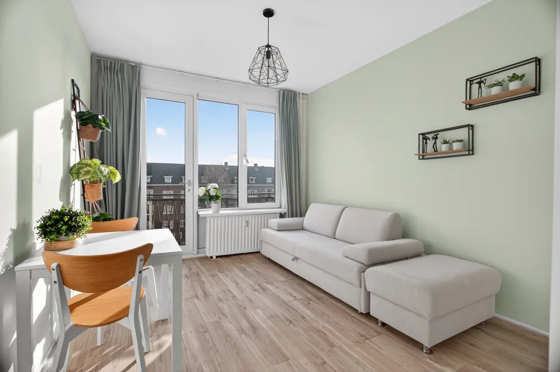 Are you looking for a bright, stylish and move-in ready studio apartment with a unique waterfront view in a prime location in Amsterdam-West? Then Korte Geuzenstraat 506 is definitely worth a viewing.