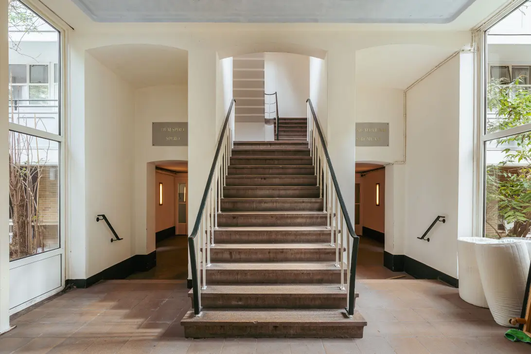 A room/apartment in a fantastic location on the Kostverlorenkade, situated on the top floor of a monumental apartment building. From here, you can enjoy breathtaking views over the city. The room features its own washbasin, while the bathrooms, toilets, and kitchens (equipped with two countertops) are shared with other residents. Please note: this concerns a non-self-contained living space, meaning it is not possible to obtain a mortgage from a bank. However, a family mortgage is possible.