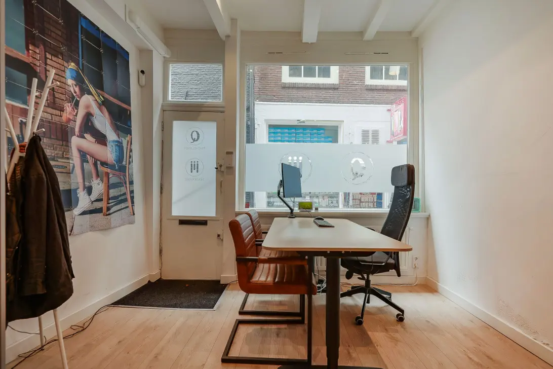 Are you familiar with Korte Lijnbaanssteeg, between Spuistraat and Nieuwezijds Voorburgwal? This fantastic building, located in the heart of Amsterdam, is for sale as a whole. We found a photo in the archives of the building, which was once used as a men's hairdresser with an apartment above. Currently, the building is used as an office, but its zoning for Centrum -3 makes it ideal for residential use. There are four floors in total, plus a basement, with the dining room and kitchen on the ground floor, the living room and bathroom on the first floor, and a total of two bedrooms on the upper floors.