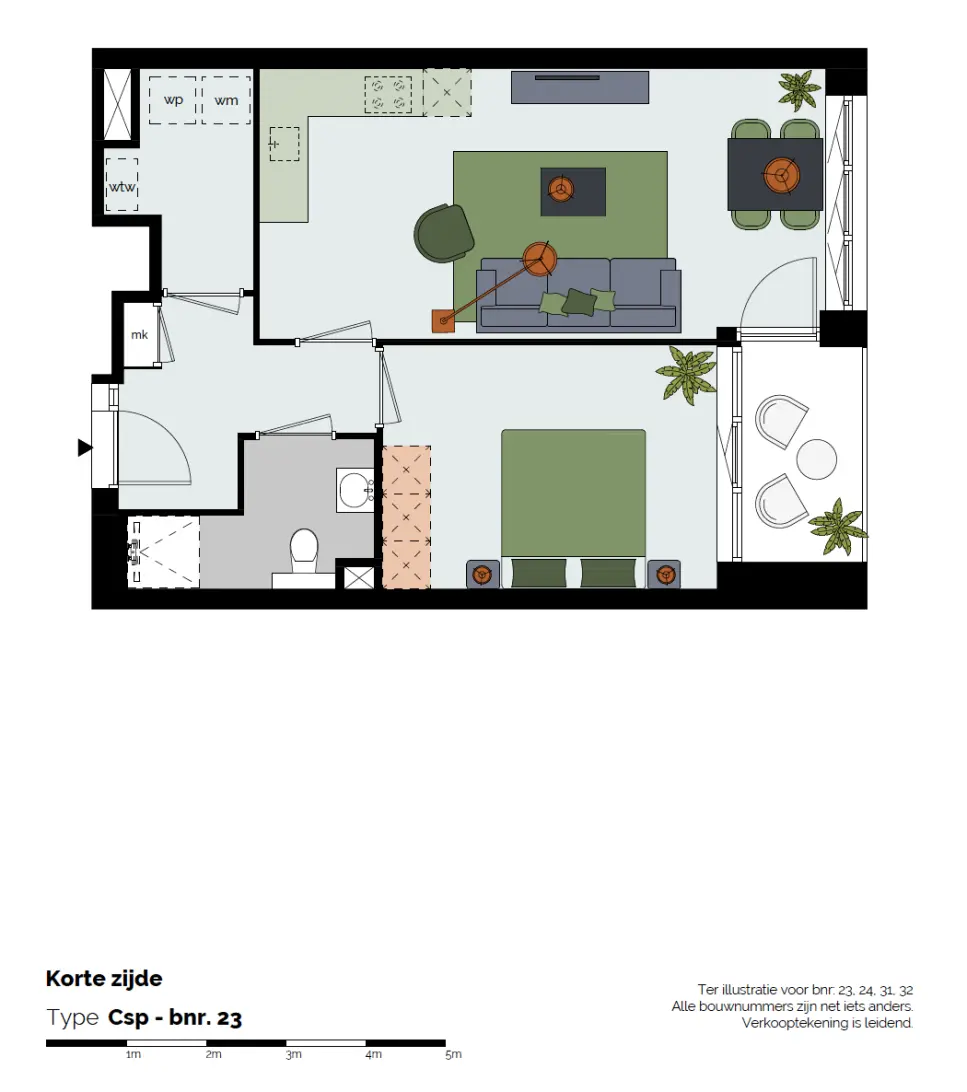 Appartementen - Korte zijde type C1 / C2 / D / Dsp