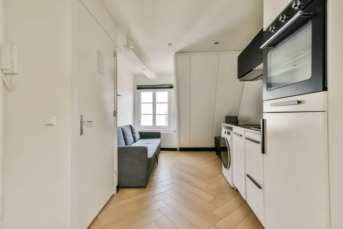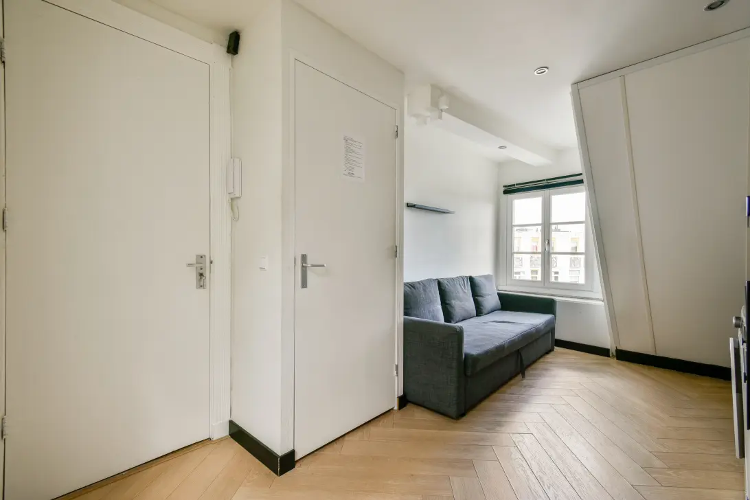 The separate bedroom is spacious enough for a large double bed – a real plus compared to a studio. There is also the opportunity to add extra light and space by installing a dormer (subject to permit and approval from the HOA).