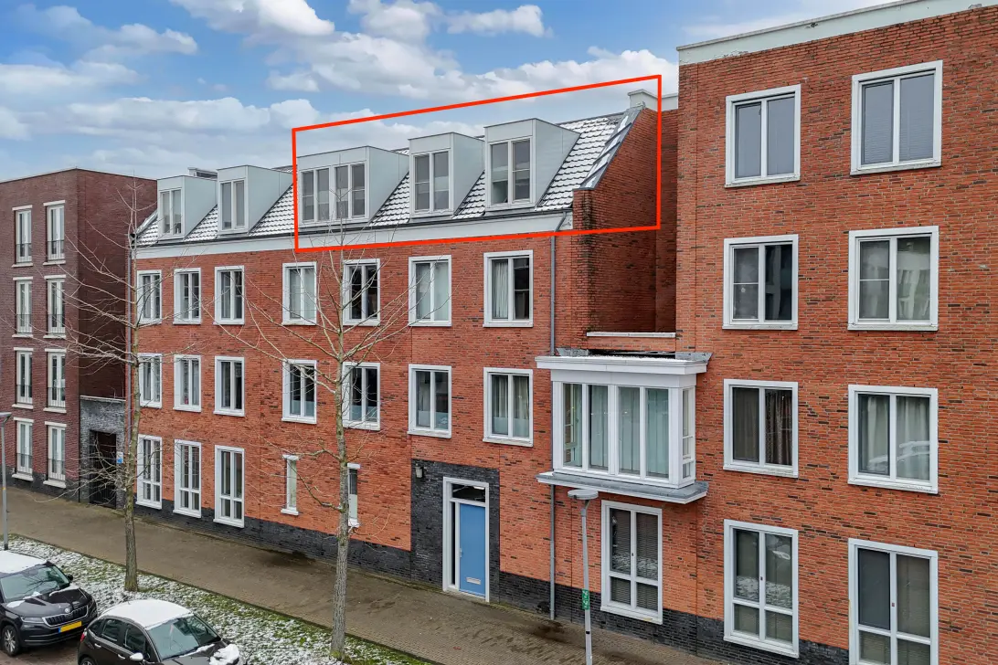 De hoofdslaapkamer bevindt zich aan de achterzijde en kijkt uit op het dakterras. Een rustige, comfortabele ruimte die keurig is afgewerkt. Het gehele appartement is voorzien van op maat gemaakte, elektrisch bedienbare raambekleding (ter overname).