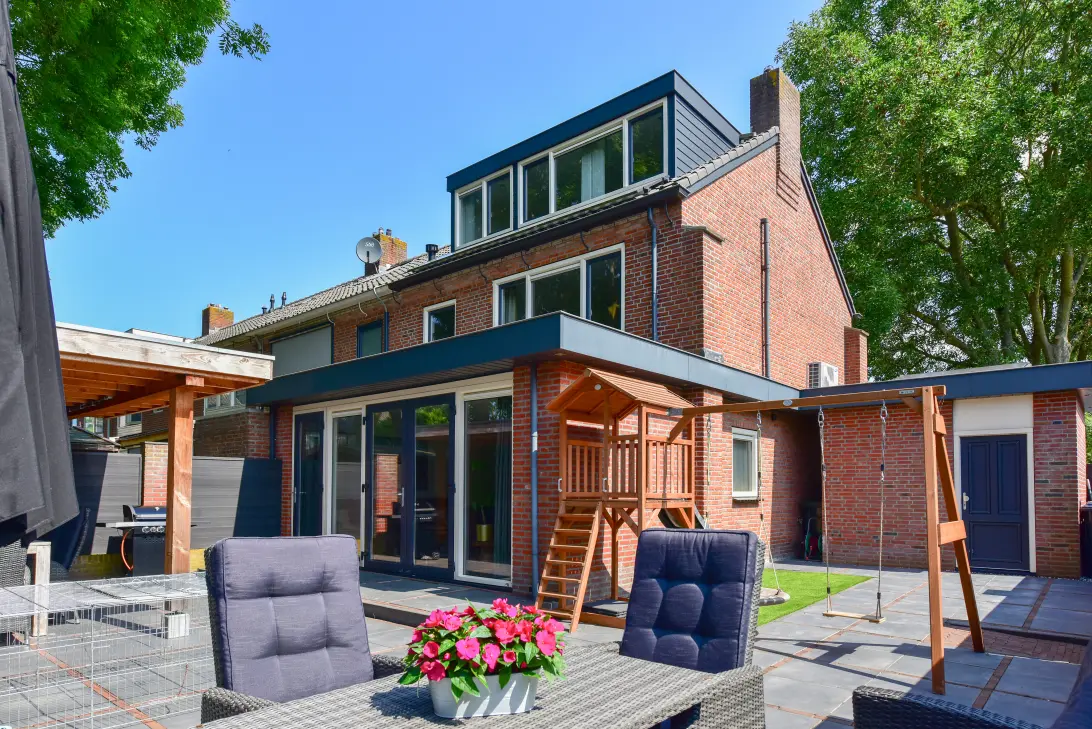 Located in a quiet, car-free area next to a park, this fully renovated and extended corner house sits on a large, private plot (197 m²) with plenty of privacy. Living area approx. 123 m². Everything has been renovated. Energy label A, stone garden wall with lighting, stone shed, and landscaped garden with, among other things, a covered lounge area. This house is a must-see; it's a rare find!