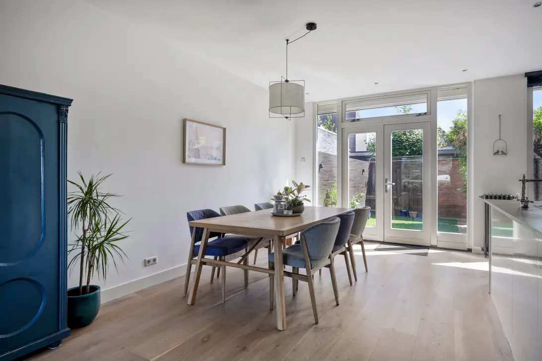 De woonkamer is uitgebouwd en daardoor echt ruim te noemen. Een aparte zit- en eethoek kan je hier makkelijk kwijt.