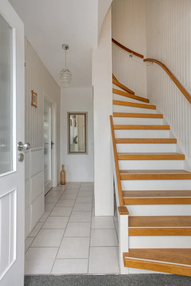 Entree met hal, toiletruimte en trapopgang. Vanuit de hal toegang tot de lichte, open leefruimte met woonkamer en eethoek. De halfopen keuken is praktisch ingericht en grenst aan de eethoek. Grote raampartijen zorgen voor veel daglicht en een prettige woonbeleving.