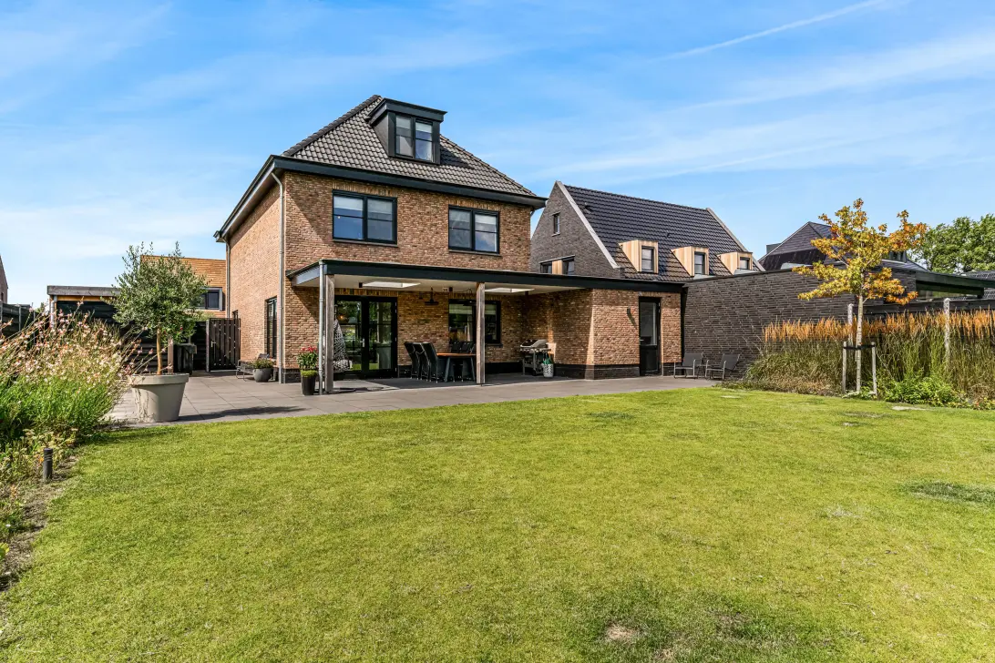 De buitenruimte is ruim 400 m² en de tuin is aangelegd met sierlijke borders, bloeiende planten en meerdere terrassen waar je altijd kunt kiezen voor zon of schaduw. Geniet van lange avonden onder de aangebouwde overkapping met lichtkoepels of strijk neer achterin de tuin onder de stijlvolle overkapping met lamellen. Dankzij het beregeningssysteem blijft alles fris en groen en via de vlonder aan het water kom je heerlijk tot rust. Een praktische fietsenberging met elektra maakt het geheel compleet.
