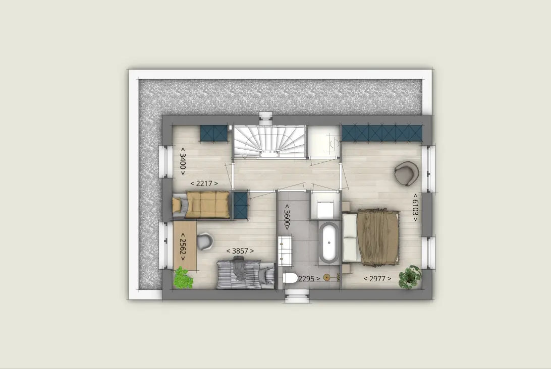 - levensloop bestendige optie met casco badkamer beneden, wel voorbereid met leidingwerk en een slaapkamer met en suite deuren. Ook eventueel te
