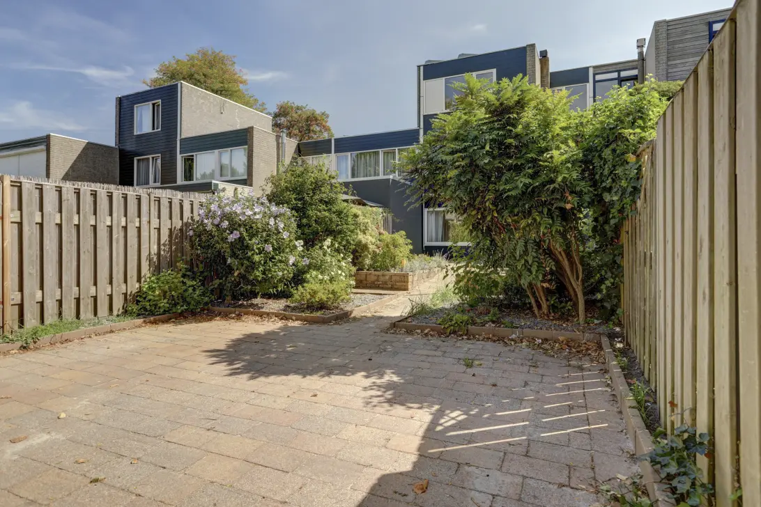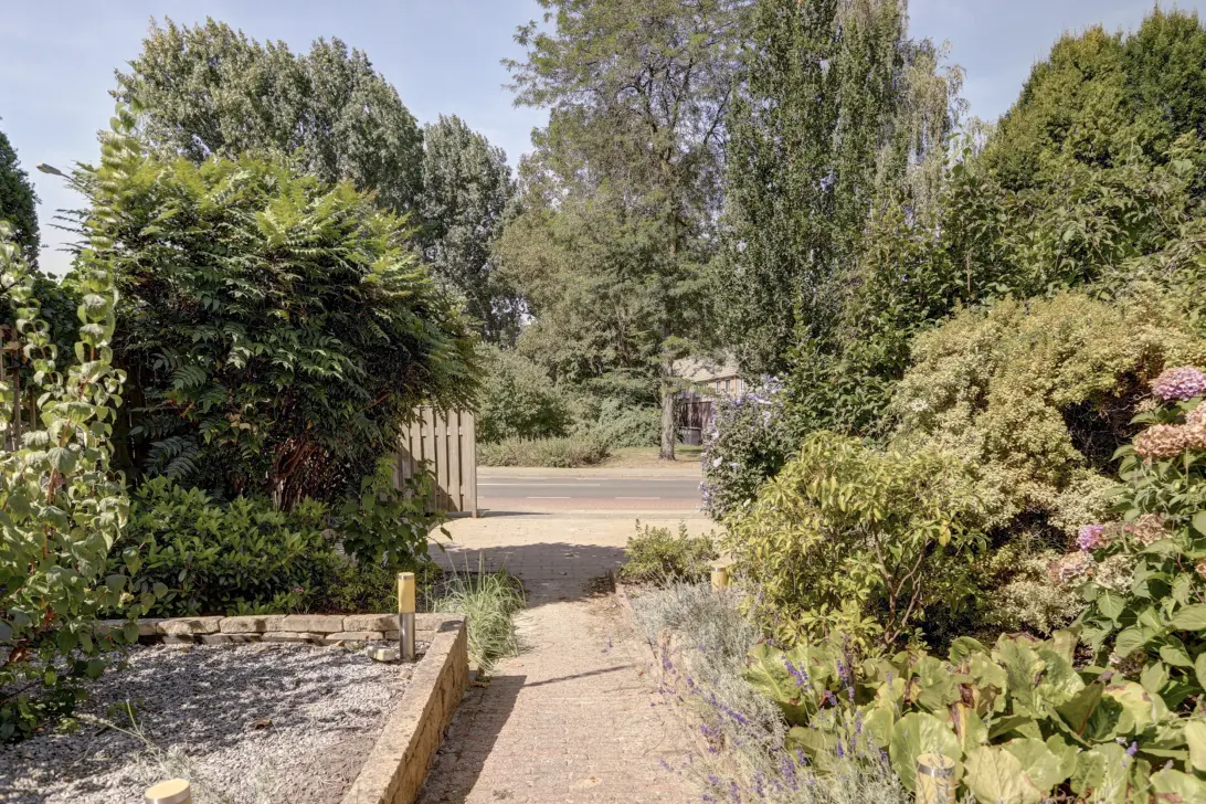 De tuin heeft een eigen oprit, met ruimte om 2 auto’s te parkeren.
