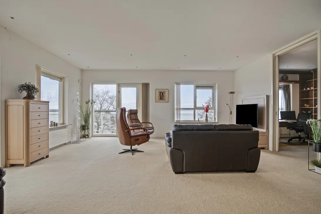 U komt de woning binnen in de hal waar u voldoende ruimte heeft voor een garderobekast en bereikt u de diverse vertrekken, de inpandige berging en separaat toiletruimte met fonteintje. Via de glazen openslaande deuren loopt u door naar de slaapvertrekken met badkamers en betreedt u de woonkamer middels glazen tussendeur. De woonkamer heeft schitterend uitzicht over het Gooimeer en u bereikt via de schuifpuien het riante terras van. circa 33 m2. U heeft voldoende mogelijkheid om hier een heerlijke zitplek te creëren en te genieten van het uitzicht over het Gooimeer. De woonkamer is heerlijk ruim en heeft veel lichtinval door de diverse raampartijen. De woonkamer beschikt over veel ruimte voor het plaatsen van een royale zithoek en eethoek. De half open keuken is gelegen achter het eetgedeelte en u heeft hier uitzicht over de haven. De keuken is ruim met veel kastruimte, is voorzien van diverse inbouwapparatuur en heeft een provisiekast zodat u alle opslag dicht bij u in de buurt heeft. De keuken is voorzien van een inductiekookplaat met daarboven een afzuigkap, een oven, een magnetron, een vaatwasser, een koel-/vriescombinatie en een hoge druk stoomoven.