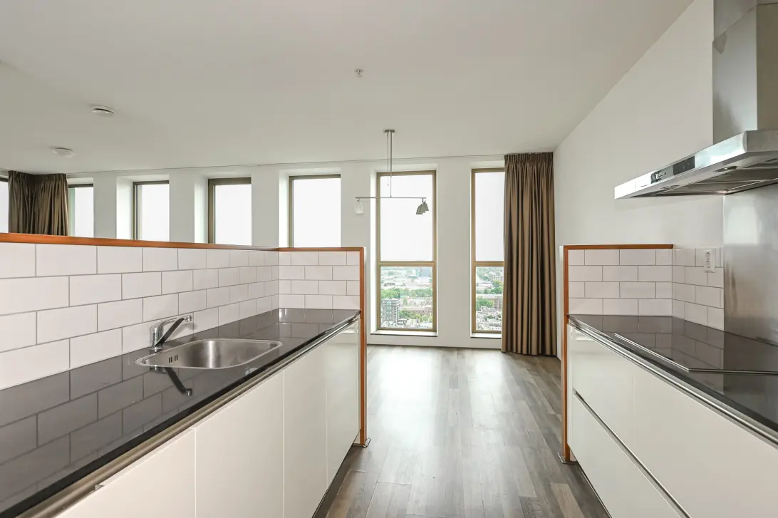 Dit luxe appartement bevindt zich op de 28e verdieping van het prestigieuze appartementencomplex “De Kroon”. Met een woonoppervlakte van 119 m2, een geweldige keuken, twee comfortabele slaapkamers, de mogelijkheid voor een derde slaapkamer en een stijlvolle badkamer biedt deze woning alles wat u zich kunt wensen. Bovendien geniet u hier van een spectaculair uitzicht over de stad en de verre omgeving. Gelegen midden in het centrum dus met alle voorzieningen binnen handbereik, maar dankzij de gunstige ligging toch heerlijk rustig wanneer u thuis bent.