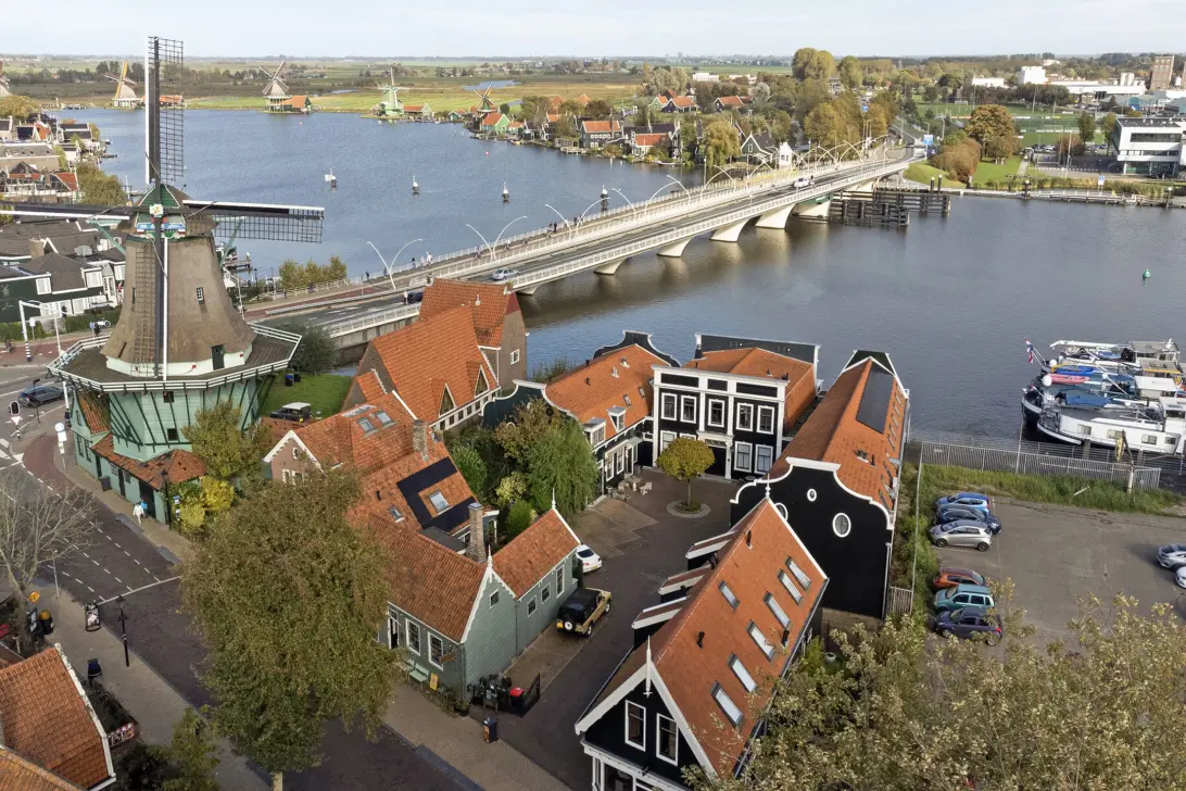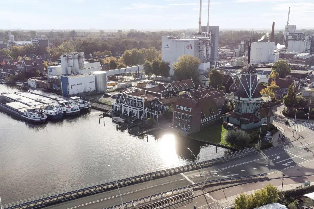 Uitzicht om in te lijsten…. Vanaf het terras op de begane grond én het terras op de eerste verdieping, onderling verbonden met een trap, geniet je volop van het wonen aan de Zaan. Aan de linkerzijde zie je de bekende molens van De Zaanse Schans, voor je de Julianabrug en aan de overkant van het water staat Oliemolen De Ooievaar. Pal naast Duyvis, een van de wereldberoemde bedrijven uit de Zaanstreek.