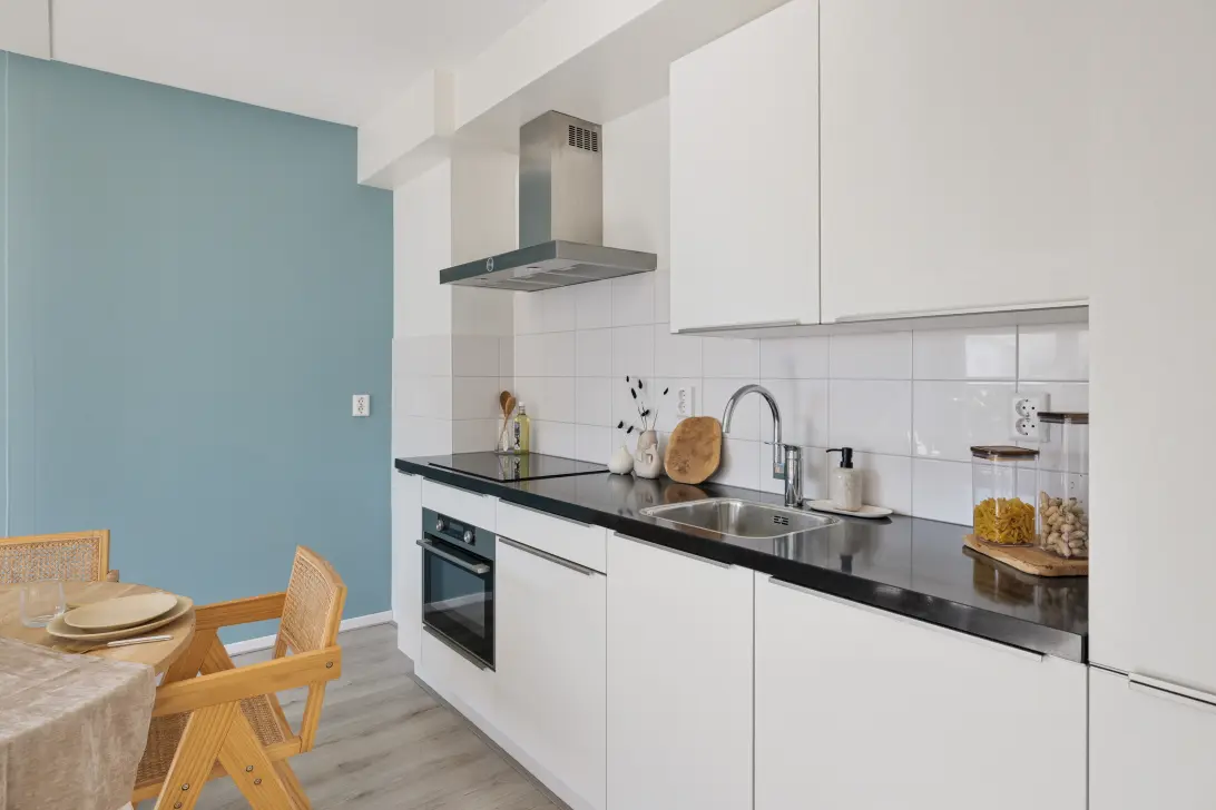 Je treedt nummer 482 binnen. Via de entree/hal heb je toegang tot alle vertrekken. De lichte woonkamer met moderne keuken (2023) is compleet uitgerust met een inductiekookplaat, afzuigkap, combi-oven, koel-vriescombinatie en vaatwasser en klaar voor snelle doordeweekse maaltijden én uitgebreid koken in het weekend. De slaapkamer heeft een goed formaat en biedt genoeg ruimte voor een tweepersoonsbed en kledingkast. De badkamer met douche, vaste wastafel, toilet en wasmachineaansluiting is netjes en modern afgewerkt. De gehele woning beschikt over een laminaatvloer.