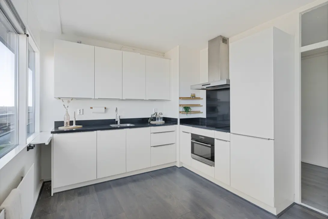 De lichte woonkamer vormt het hart van de woning en biedt toegang tot het zonnige balkon op het zuiden. Hier geniet je van volop zon en een prachtig uitzicht over de skyline van Utrecht. De aangrenzende tweede slaapkamer is ideaal als werk-, logeer- of hobbykamer. Het gehele appartement is afgewerkt met een nette pvc-vloer, strakke wanden en plafonds, een moderne keuken en net sanitair.
