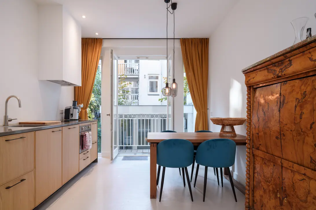 Uitstekend afgewerkt en licht appartement met tuin en ruime berging aan de Lange Leidsedwarsstraat 174-A.