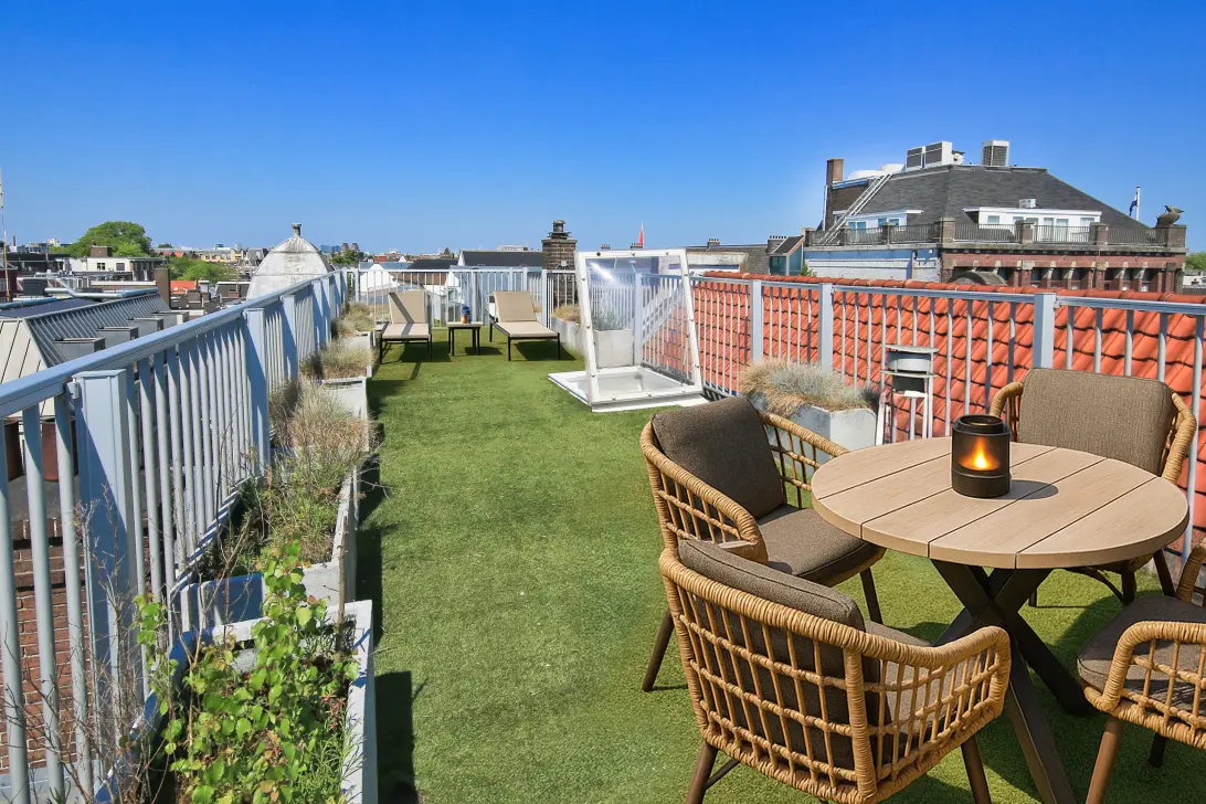 Vanuit de eerder genoemde hal op deze etage is er een trap naar het heerlijke dakterras van maar liefst 43 m².