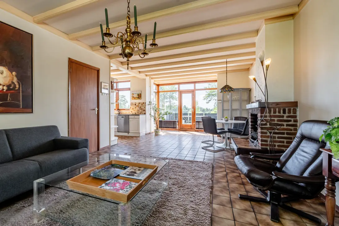 Through the staircase from the hall you reach the landing. From here you have access to: the living room with open kitchen, bathroom (with sink and shower) and separate toilet. The bright living room has a tiled floor with underfloor heating and a cozy fireplace. The spacious living room also gives you access to the balcony at the front with sliding doors, where you can enjoy the morning sun. At the rear you enter the spacious roof terrace located on the southwest through the patio doors. Here you can enjoy the sun and the unobstructed view over the Gaasp in peace and privacy. If you prefer to sit in the shade, you can turn off the electric sunshade. The open kitchen located at the rear has plenty of cupboard space and various built-in appliances such as: ceramic hob, extractor hood, combi oven, dishwasher and refrigerator.