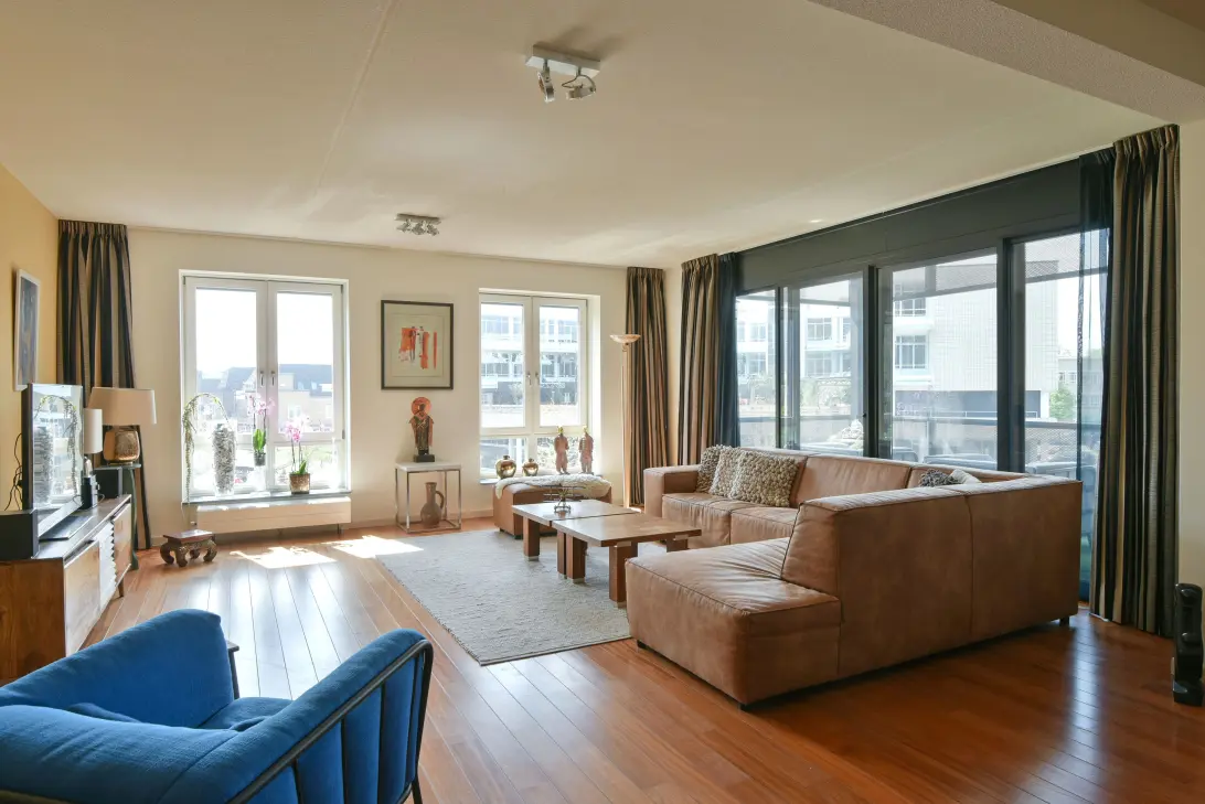- veel lichtinval door de vele raampartijen, welke rondom het appartement zijn gerealiseerd, alsmede zijn uitgerust met elektrisch bedienbare sunscreens
