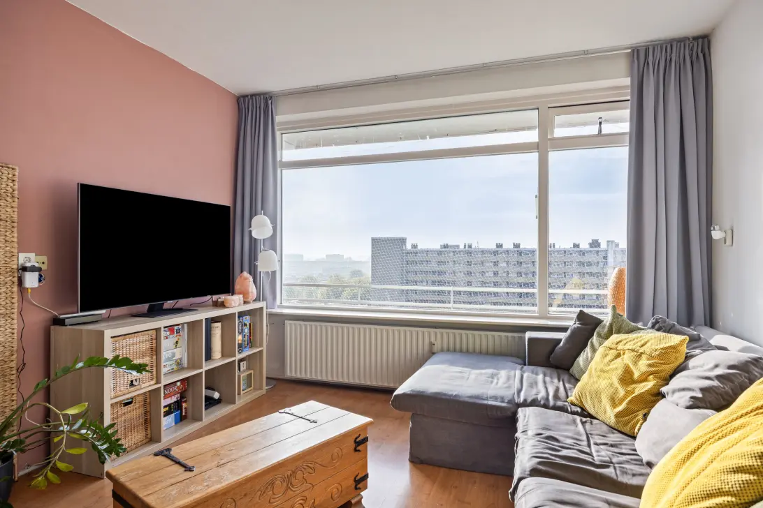 • Attention starters: A modern 3-room apartment, ideal for one- or two-person households. • High and dry: Located on the top floor with a fantastic unobstructed view over the city and even all the way to Schiphol. • Bright & sunny: A generous south-facing balcony – perfect for your morning coffee, a good book, or simply enjoying a moment in the sun. • Modern comfort: Featuring a fully equipped kitchen, a spacious bathroom, and a separate toilet. • Roomy bedrooms: Two well-sized bedrooms, perfect as a master bedroom and an extra room for an office or guest space. • Extra storage: Conveniently, there’s your own storage room on the ground floor. • Well maintained: The property boasts a solid foundation with partly double-glazed windows and well-functioning facilities.