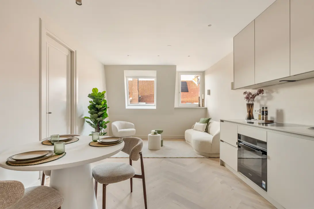 Via het nette trappenhuis kom je uit bij de entree van het appartement op de derde verdieping. De volledige renovatie heeft gezorgd voor een strak, modern en stijlvol geheel. Bij binnenkomst stap je de open, lichte woonruimte binnen, waar eenvoudig een gezellige zithoek gecreëerd kan worden.