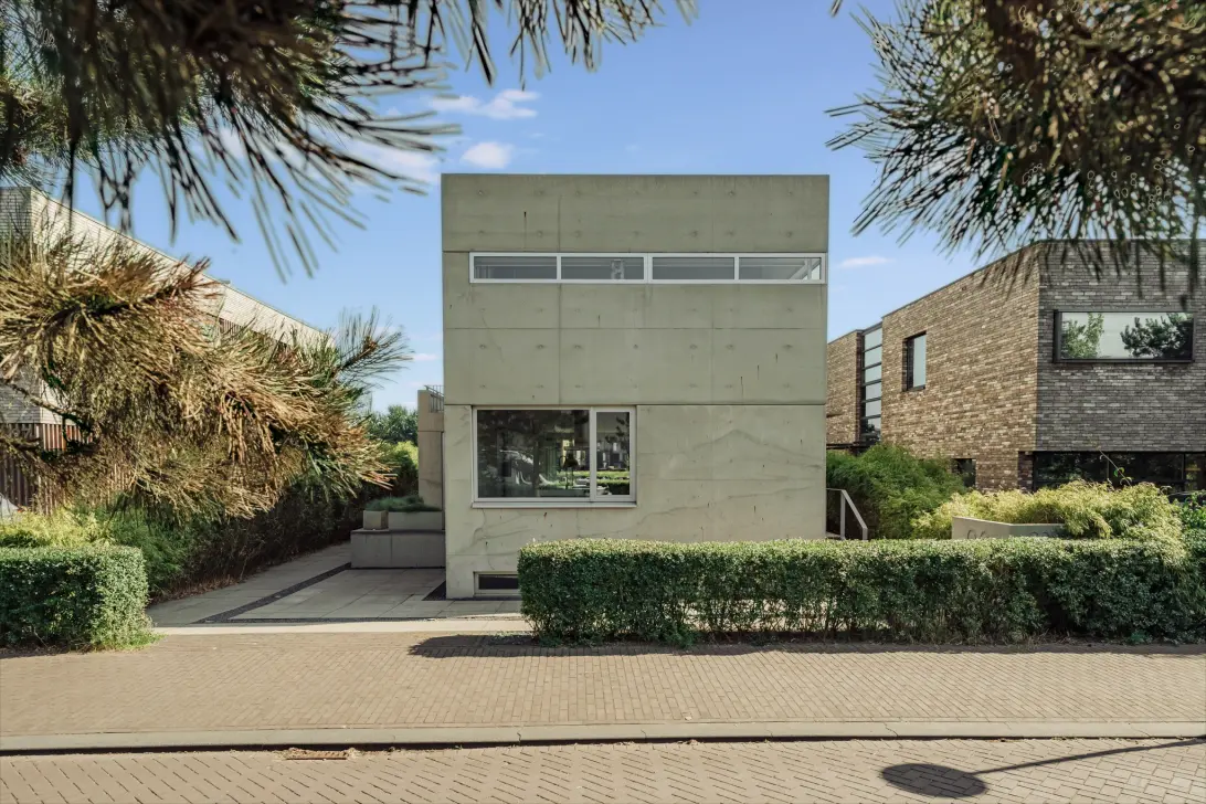 This exceptional villa, designed by renowned architect Peter Plaissier ([PS Architecten](https://www.psarchitecten.nl/rieteiland-oost-1slider/)), is constructed from in-situ poured concrete, making it nearly maintenance-free and almost energy-neutral thanks to a geothermal heat pump and 23 solar panels. Truly unique in both experience and design. The garden surrounds the property and offers multiple seating areas and terraces, a combined indoor/outdoor fireplace integrated into the concrete façade, and space to park two cars.