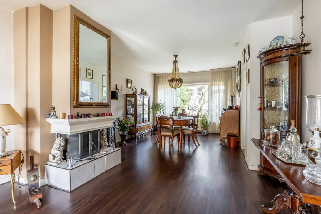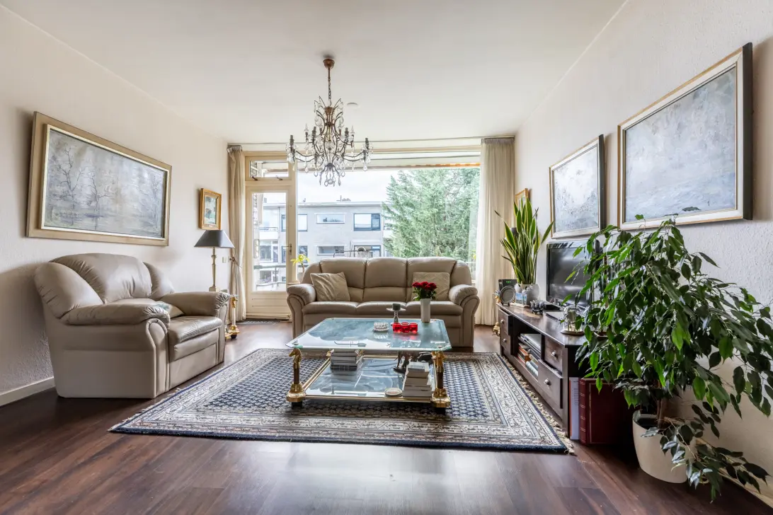 Very spacious and extremely roomy 3-room apartment at Laurens Reaellaan 26-II of approx. 89 m2 with two balconies. The property has a very spacious, bright living room with an open fireplace, a separate neat kitchen, a modern bathroom, and two spacious bedrooms. The living room overlooks the adjacent courtyard gardens, providing a “green” view. The apartment was built in 1958 and is located on the 2nd floor of a well-maintained complex, ideal for those looking for a comfortable apartment with a practical layout and pleasant outdoor spaces. An added bonus is the enormous storage room with natural light in the basement.