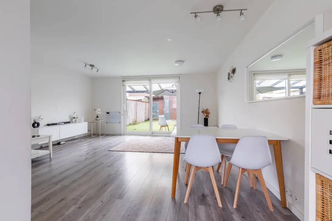 Bij binnenkomst in de hal heb je toegang tot meerdere vertrekken. De woonkamer is ruim, licht en biedt voldoende ruimte voor een comfortabele zit en eethoek. Vanuit de woonkamer loop je zo de heerlijke tuin in waar je kunt genieten van rust en privacy.
