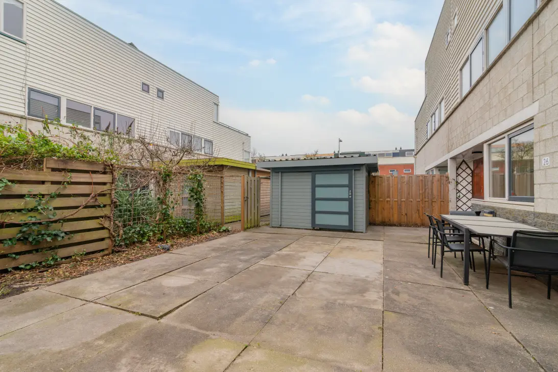 Tevens is er in de tuin een houten berging waar fietsen en de barbeque gestald kunnen worden.