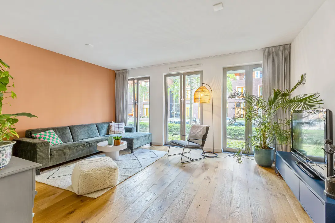 Spacious duplex ground-floor apartment of 127 m² with three bedrooms (with the possibility of creating a fourth) – a hidden gem in the friendly Amsterdam-West! The home is generously laid out, tastefully renovated in 2021, and part of a modern residential complex built in 2011. It also comes with its own covered parking space and a private storage unit in the basement. The perfect family home for those ready to take the next step!