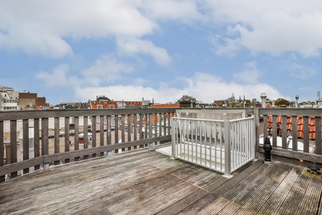 Bright and well-maintained upper-floor apartment of approximately 82 m², featuring two bedrooms, a modern bathroom, and a spacious rooftop terrace of 21.7 m². Ideally located in the heart of the city, just around the corner from Leidseplein, with numerous cafés, restaurants, and shops within easy reach. The property is spread over two floors and offers a practical layout and a neat finish.
