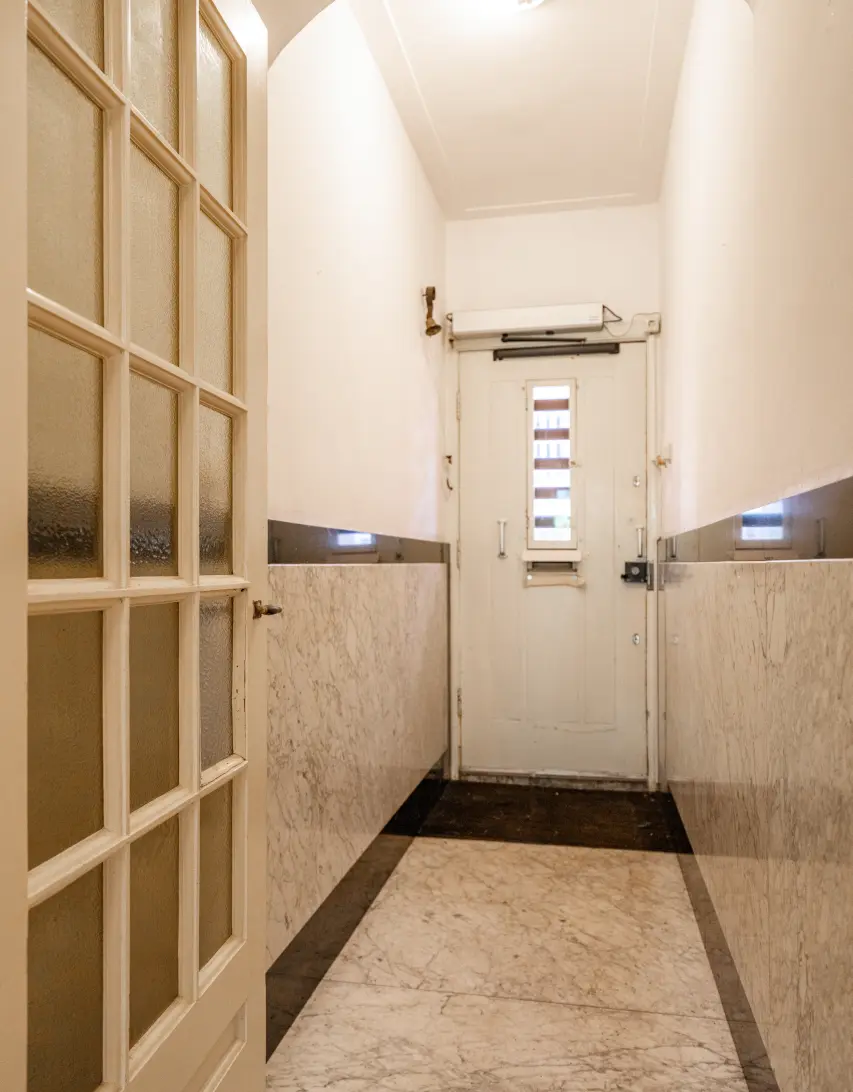 Via je eigen entree kom je binnen in een ruime hal, die direct toegang geeft tot alle vertrekken en waar ook het separate toilet is gesitueerd.
