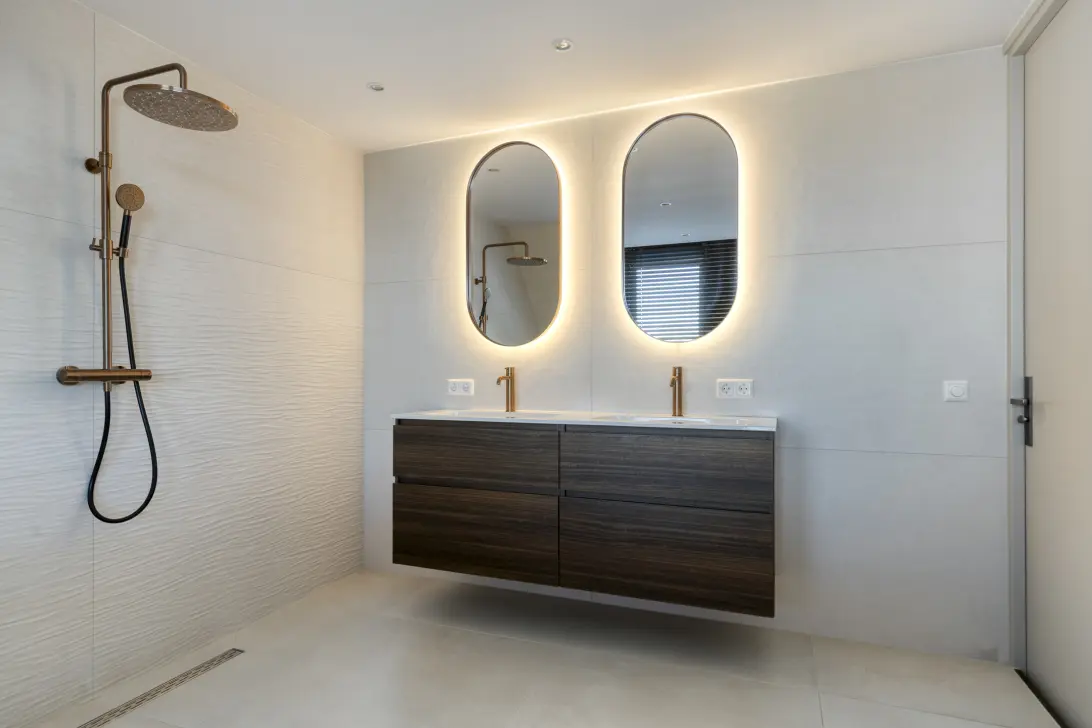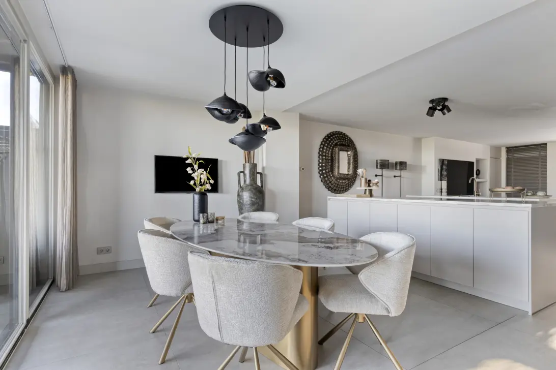 Stap binnen via de garage, die slim is ingericht als bergruimte, en ontdek de lichte hal met directe toegang tot de royale woonkamer, een aangewezen kantoorruimte en een handig toilet met fonteintje. De woonkamer straalt met een elegante plavuizenvloer met vloerverwarming, terwijl de vernieuwde uitbouw een gezellige eethoek biedt – dé plek om samen met vrienden en familie te genieten en te ontspannen. De ruime keuken, voorzien van twee kook/spoeleilanden, composiet marmer werkbladen en alle moderne inbouwapparatuur, laat jouw innerlijke chef-kok direct stralen. Omdat de oude entree bij het woonoppervlakte is bijgevoegd is hier nu een hele fijne zithoek gecreëerd met cinewall en sfeervolle elektrische haard.