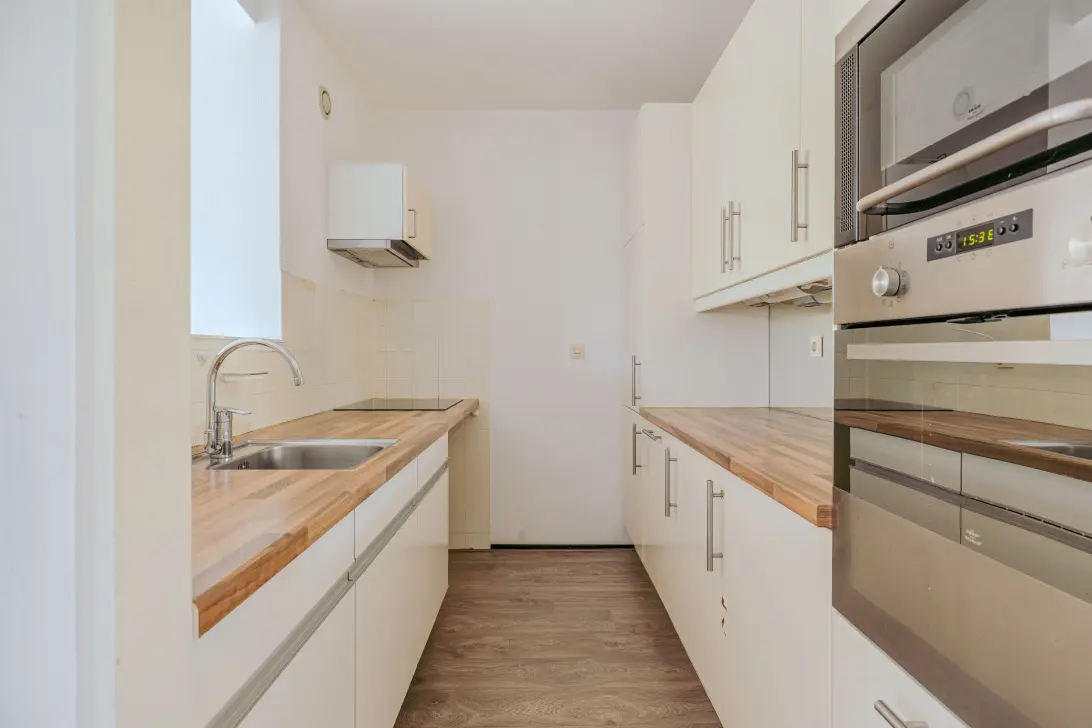 Wat dit appartement extra aantrekkelijk maakt, is het balkon. Vanuit de eetkamer stap je naar buiten en kom je op een heerlijk ruim balkon. Hier geniet je van de ochtendzon met een kop koffie of sluit je de dag af met een glas wijn in de avondzon.