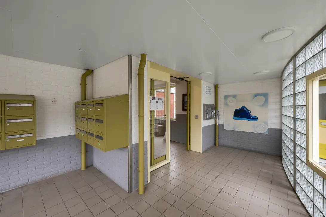 Hoofdentree met bellentableau; lift, trappenhuis en toegang tot berging.