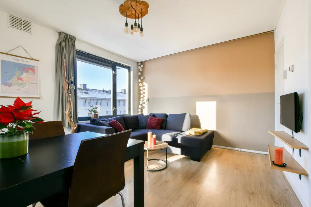 Welcome to this bright and well-maintained three-room corner apartment of approximately 66 m², located on the fourth and partially fifth floor in a quiet street in the green Slotermeer.
