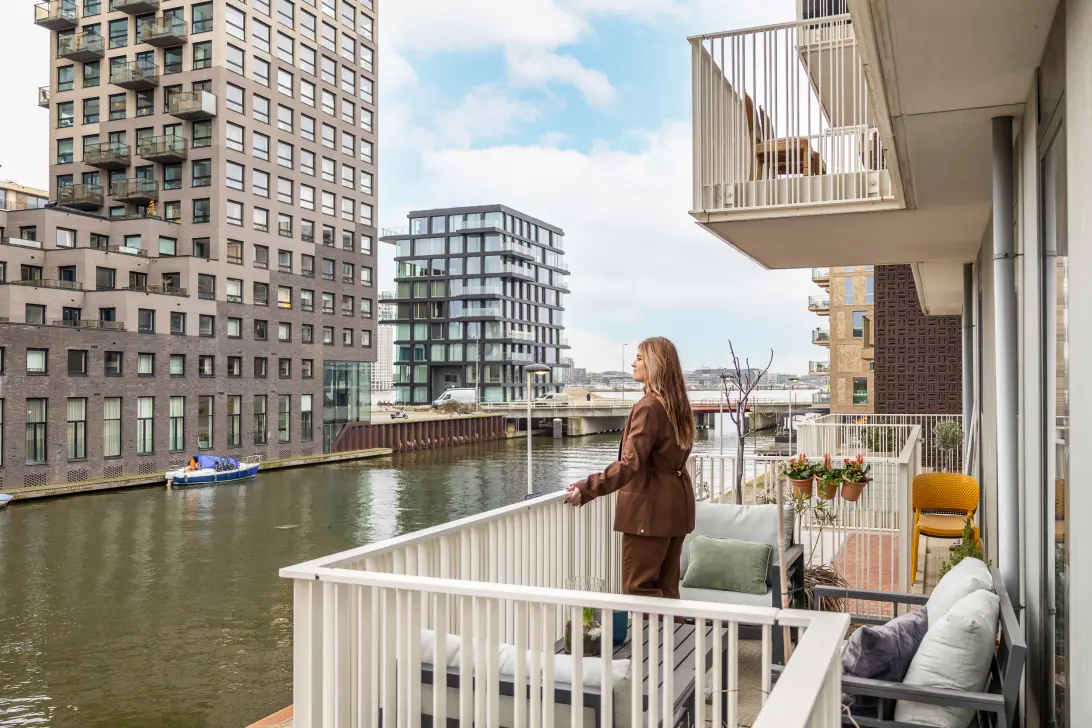 Dit is zo’n huis waar alles samenkomt: uitzicht over het IJ, een zonnig balkon en een appartement waar je spontaan verliefd op wordt.