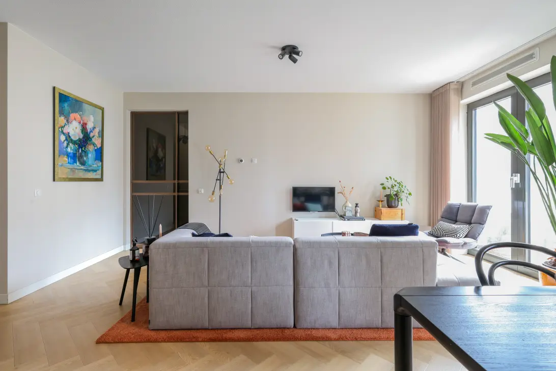 Strakke wanden, een comfortabele visgraat pvc-vloer met vloerverwarming en een stijl die tijdloos is, maar helemaal van nu. Instapklaar, verzorgd en tot in puntjes afgewerkt.