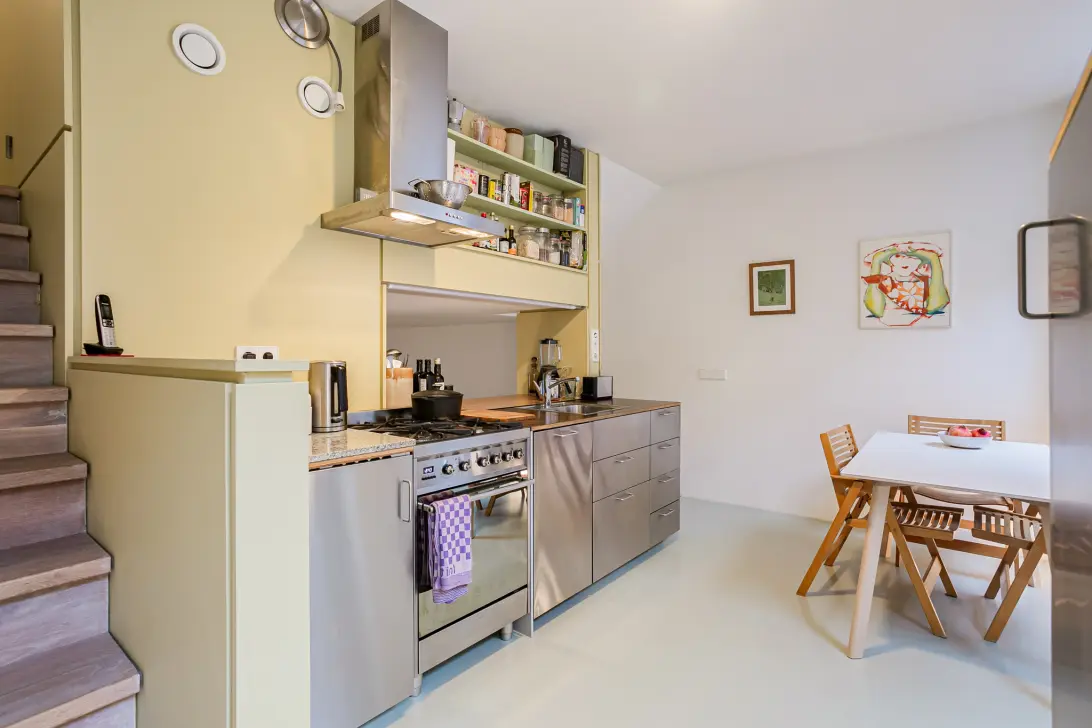 Door de split-levelopzet worden de ruimtes in het huis optimaal benut. Op de begane grond bevindt zich de sfeervolle woonkamer met een korte trap naar het souterrain, welke voorzien is van daglicht en uitstekend te gebruiken is als home office, atelier of game-room. Tevens is de begane grond voorzien van een separaat toilet met fontein. De korte trap omhoog vanaf de begane grond brengt ons naar de stijlvolle RVS-look woonkeuken met een doorkijk naar de woonkamer.