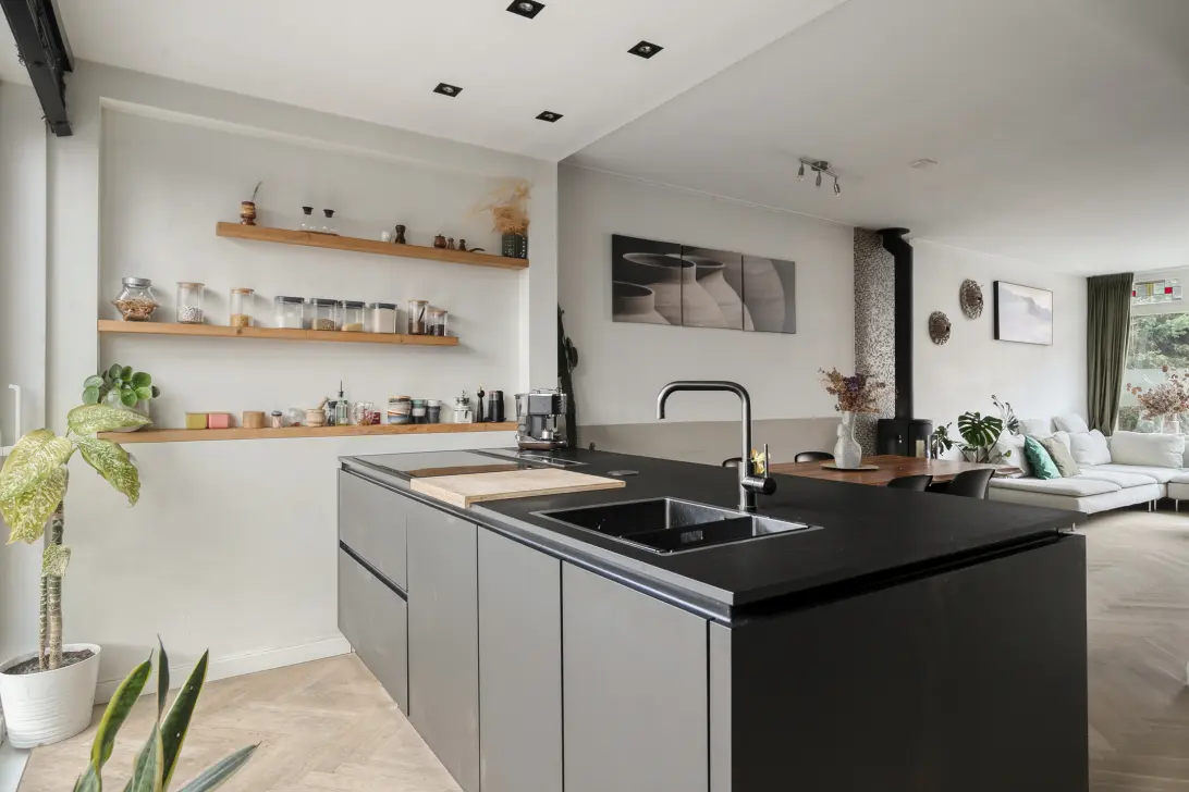 De echte eyecatcher? De fonkelnieuwe woonkeuken. Strak design, alle nieuwste apparatuur en voldoende ruimte om vrienden en familie te ontvangen voor een gezellige avond samen. Hier gaat jouw innerlijke chef helemaal los! Stel je voor: een heerlijke geur van versgebakken brood, terwijl de kinderen een huiswerkplek inrichten aan de ruime eettafel. Het is een keuken om thuis te komen.