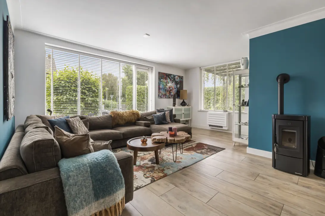 In Nederhorst den Berg, bieden wij deze keurig verzorgde eengezinswoning met garage te koop aan. U woont hier heerlijk rustig en kinderen kunnen hier fijn buiten spelen. Deze gezellige woning heeft onder meer een sfeervolle living met pelletkachel, een moderne keuken, drie slaapkamers, een garage en een knusse tuin met veranda.