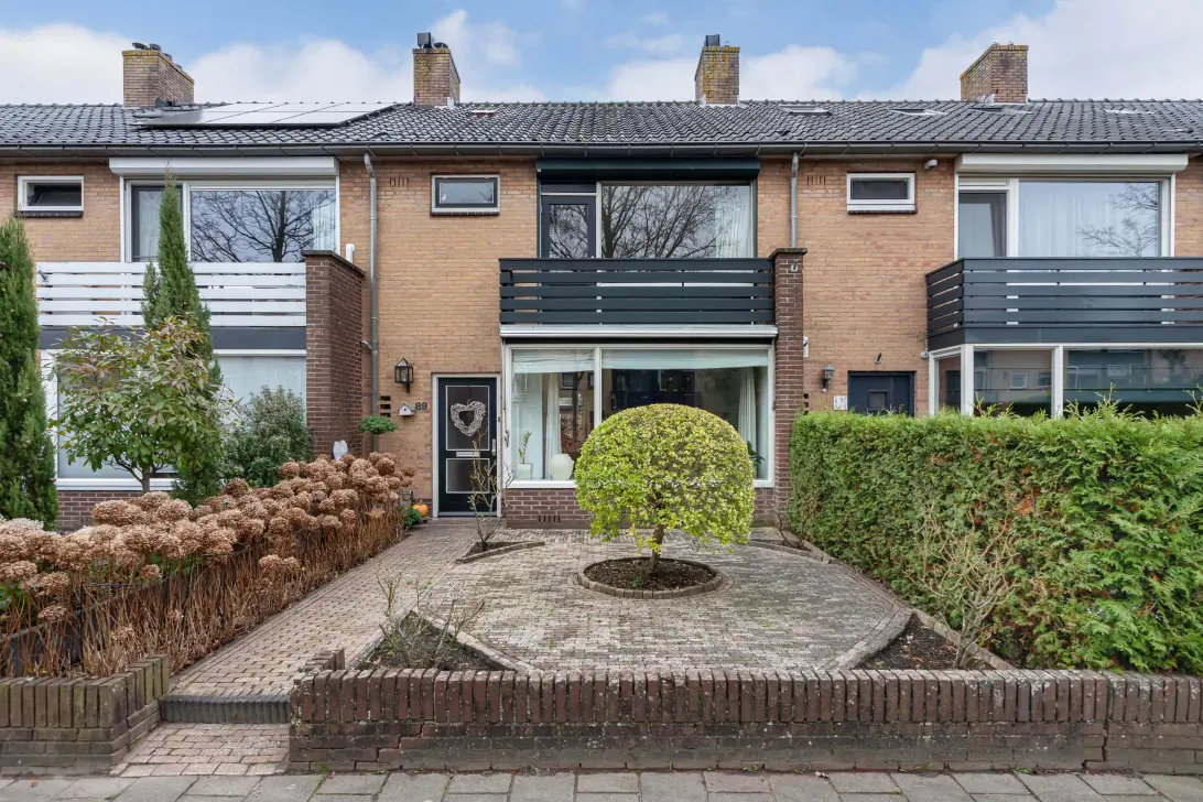 Deze ruime middenwoning (130m²) beschikt over een grote woon-/eetkamer, 4 slaapkamers, een balkon, zonnige tuin op het zuidoosten, vrijstaande berging en een achterom.