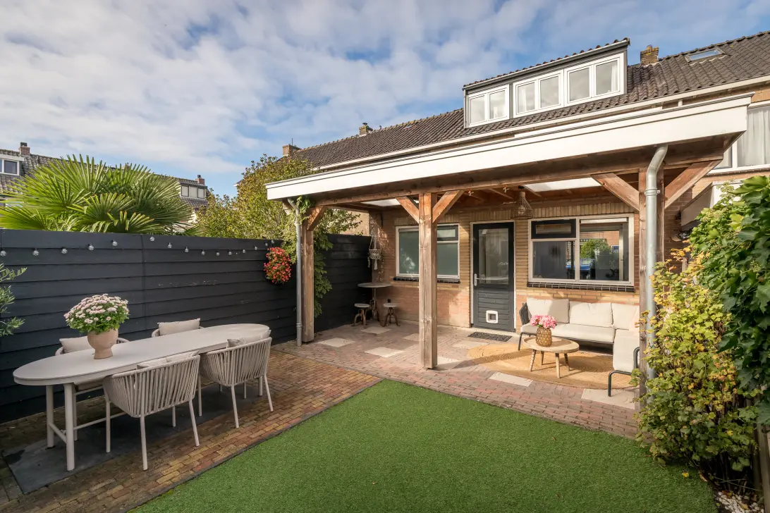 De achtertuin is op het zuiden gesitueerd en biedt u volop de privacy, een grote berging met vliering en een sfeervolle veranda met lichtkoepels. Gedurende de hele dag kunt u hier heerlijk genieten van de zon.