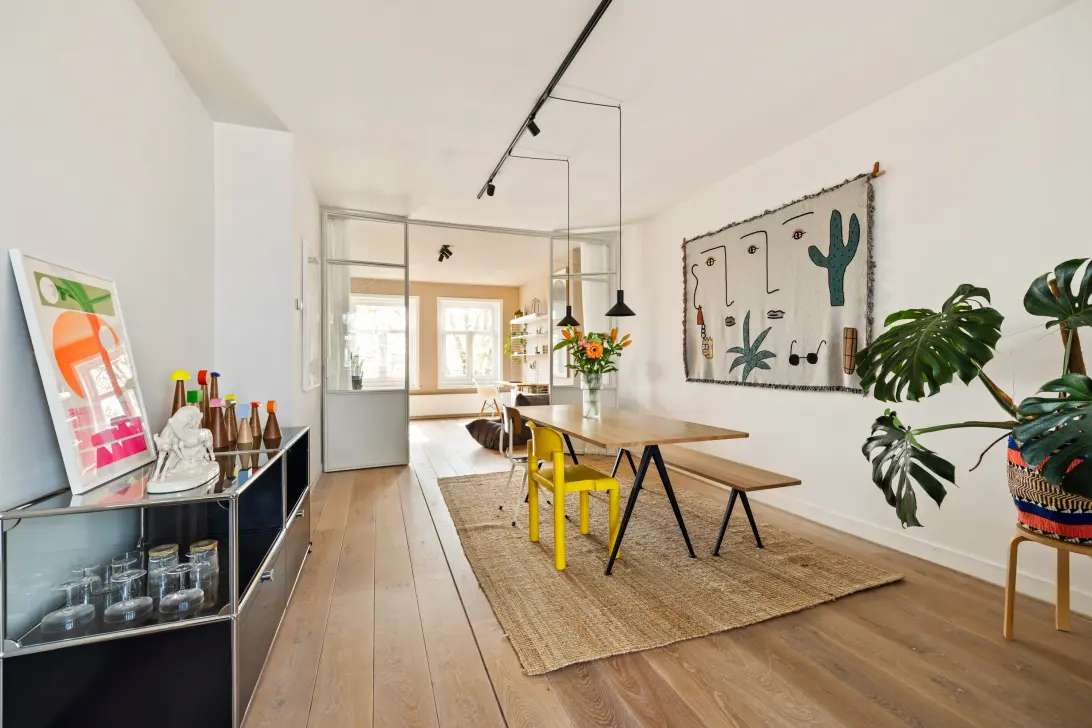 Set on one of Watergraafsmeer’s most picturesque avenues, where mature trees and elegant façades define the street scene, this charming two-storey upper residence offers approximately 103 m² of beautifully bright living space. Occupying the top two floors of a stylish townhouse, the home also boasts a spectacular roof terrace (approx. 27 m²) with sun all day long.
