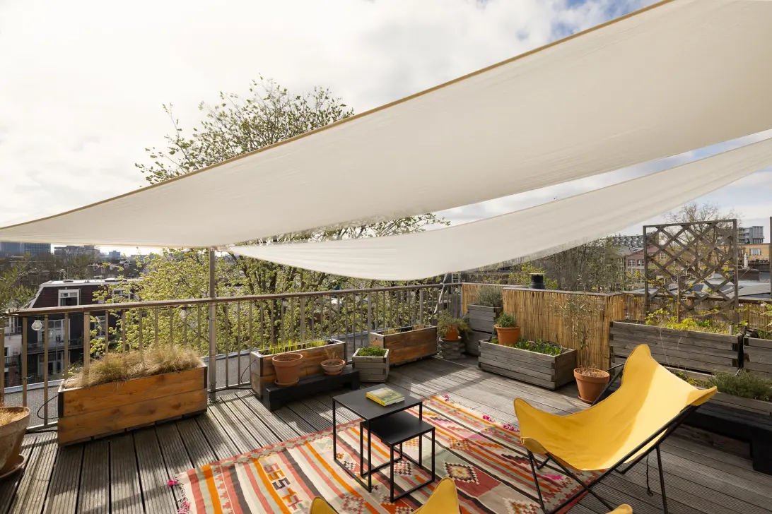 - Riant en vergund dakterras van 27,4 m² met veel privacy, vrij uitzicht en de gehele dag zon;