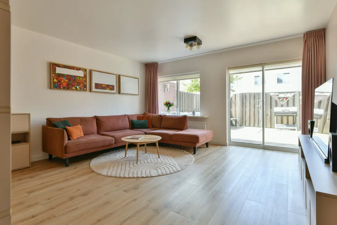 Bij binnenkomst valt direct de prachtige ruimte op, een royale woonkeuken en een bijzonder lichte woonkamer. De woonkamer is voorzien van een groot raam. De deur geeft toegang tot het uitnodigende terras. Het grootte raam creëert een echt binnen-buiten gevoel.