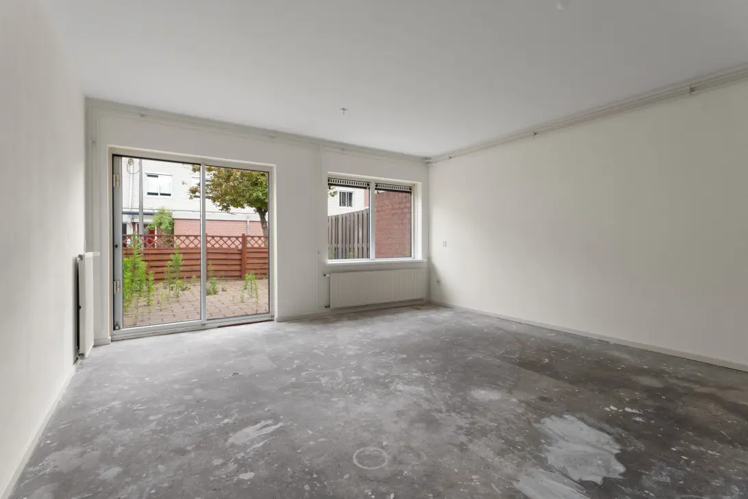 Aan de voorzijde van de woning ligt de open keuken. Deze staat in verbinding met de ruime en lichte woonkamer aan de achterzijde. De grote ramen zorgen voor veel natuurlijk licht en geven toegang tot de zonnige achtertuin op het zuidwesten – perfect om tot in de avond van de zon te genieten.