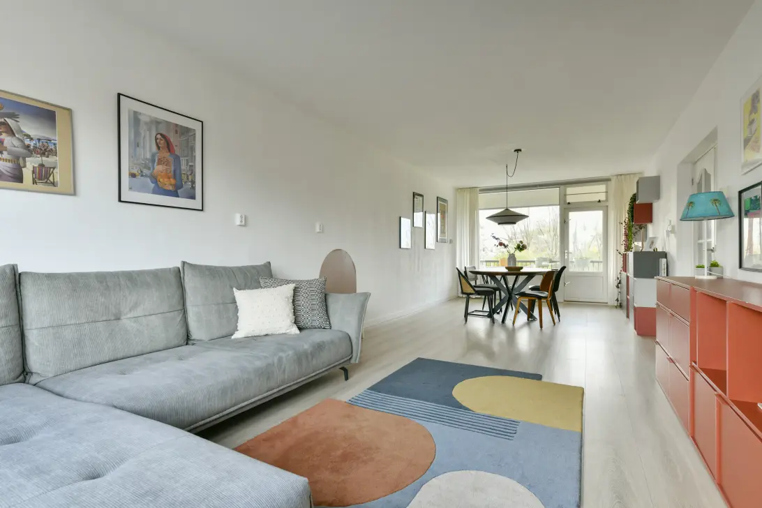 This charming and wonderfully bright three-room apartment of approx. 73 m² is located on the third and top floor of a well-maintained apartment complex. The property features a spacious living room with beautiful views over the green park, two bedrooms, a modern closed kitchen, a bathroom and a generous balcony adjoining the living room, also overlooking the park. A separate (bicycle) storage room is available in the basement.