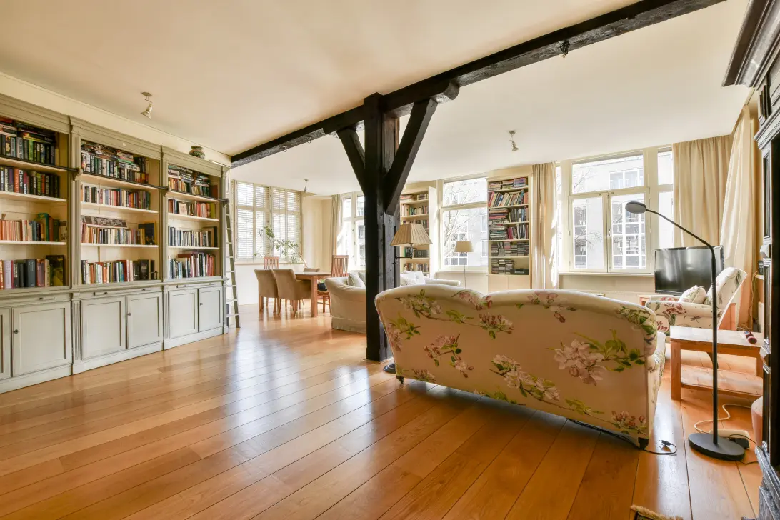 The building, called ‘De Loyersburgth’, was formerly a printing house and was fully renovated in 1999. The stately building, complete with an elevator, houses 24 apartments. This apartment offers a spacious 122 m² (all on one floor) of living space, 3 bedrooms, and a private storage unit in the basement — a rarity in Amsterdam's city center, especially along the canals!