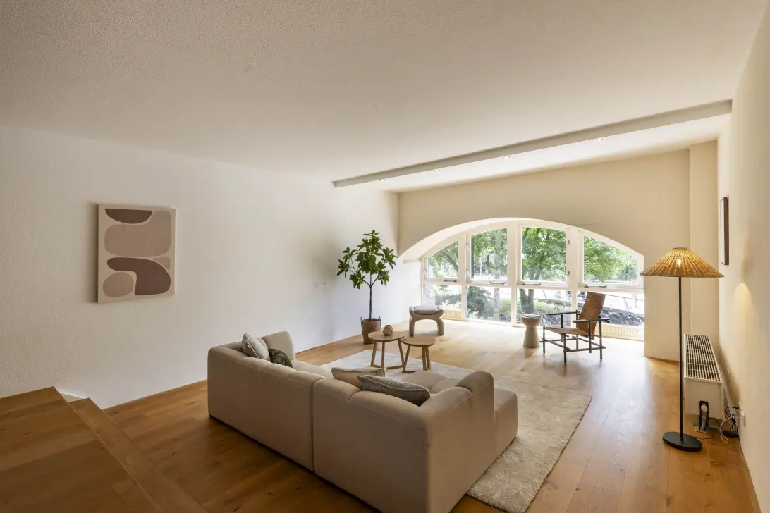De L vormige woonkamer heeft door de vele ramen veel lichtinval en geeft een prachtig uitzicht over de gracht. Op deze verdieping bevindt zich nog een slaapkamer, badkamer en een apart toilet.